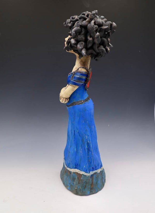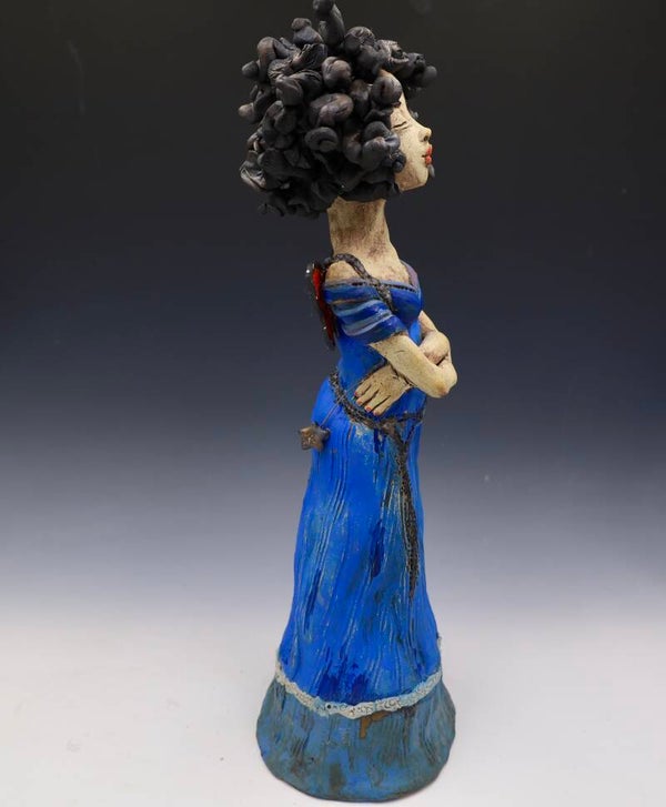 18x6 ceramic sculpture of a young girl dressed for a fairy party